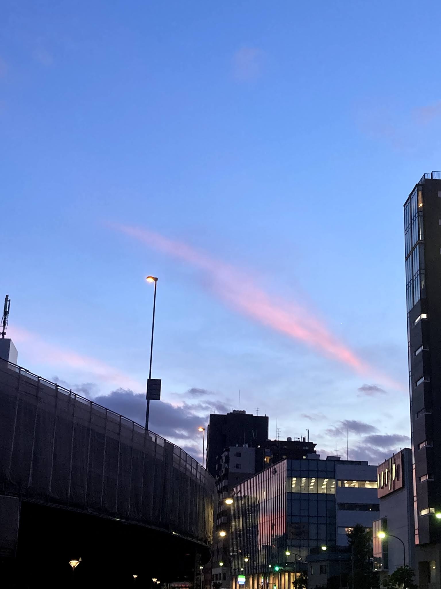 The first star of the evening on the right side of the pink cloud. The moon becomes brighter as the sun goes down.
